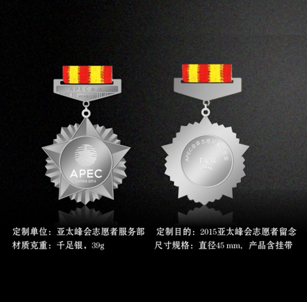 相關(guān)背景:亞太峰會(huì)志愿者服務(wù)部為志愿者留戀,定制了金銀幣禮品,產(chǎn)品設(shè)計(jì)大氣,包裝精美
